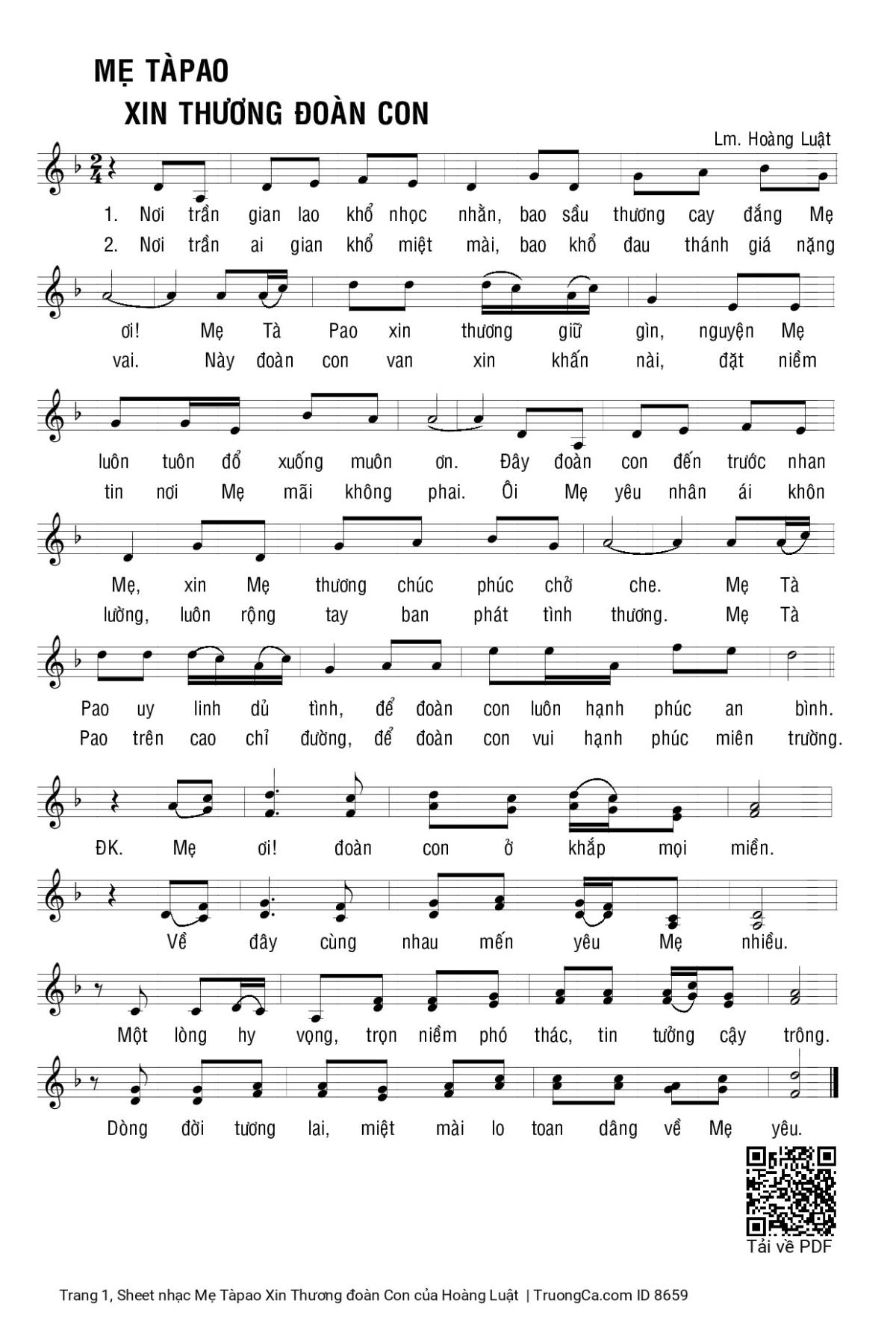 Hoàng Luật Chủ đề Ngợi ca Đức Mẹ Nơi trần gian lao khổ nhọc nhằn [PDF] [Sheet] [Lyrics] [Mp4/Midi]