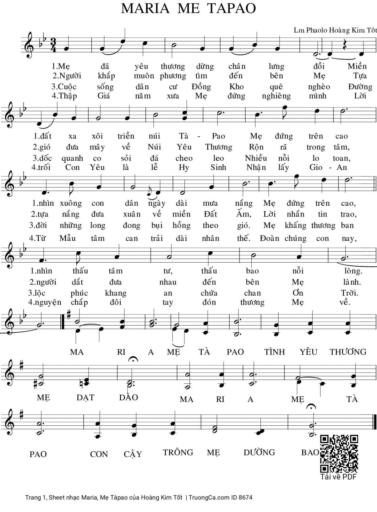 The Videos/audios Maria, Mẹ Tàpao by Hoàng Kim Tốt were embed from Youtube, Musescore or the other 3rd links. Videos are subject to 3rd's copyright control and may be removed by YouTube's copyright rules and 3rd's policies or maybe included advertisements. If you cannot access to these songs, this mean that have been removed.