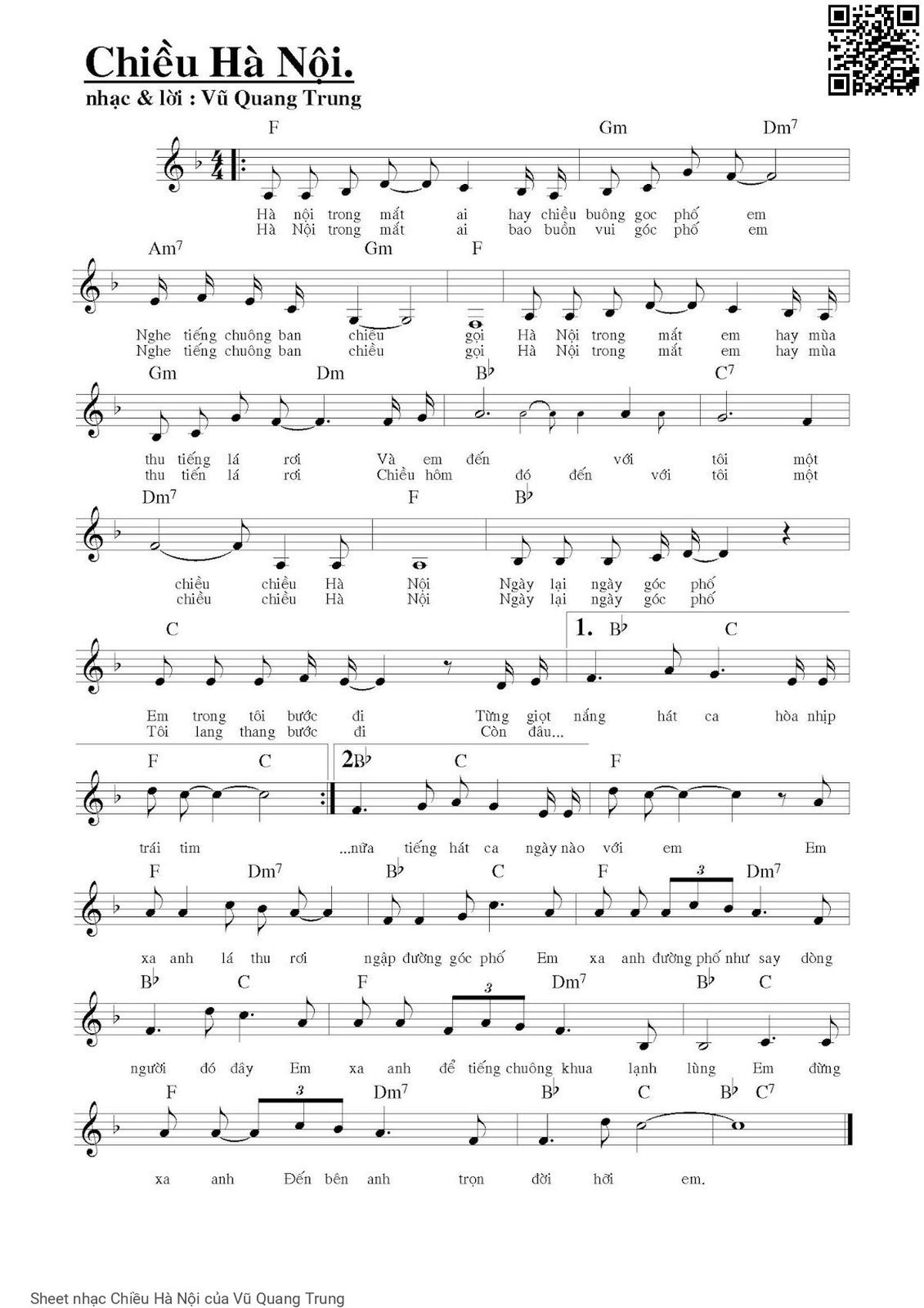 Transposition is the process of moving a song's melody and chords up or down in pitch by a constant interval. The direction of the transposition tool is indicated by a plus (+) sign for up and a minus (-) sign for down. Hover mouse over chords signs to see the chords chart of Chiều Hà Nội song.