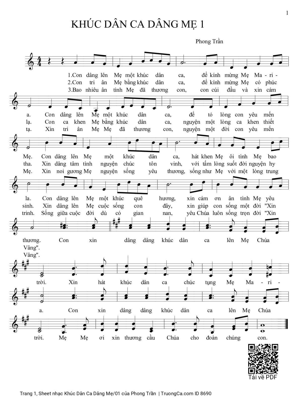 Phong Trần Con dâng lên Mẹ một khúc dân ca để kính mừng Mẹ Maria [PDF] [Sheet] [Lyrics] [Mp4/Midi]