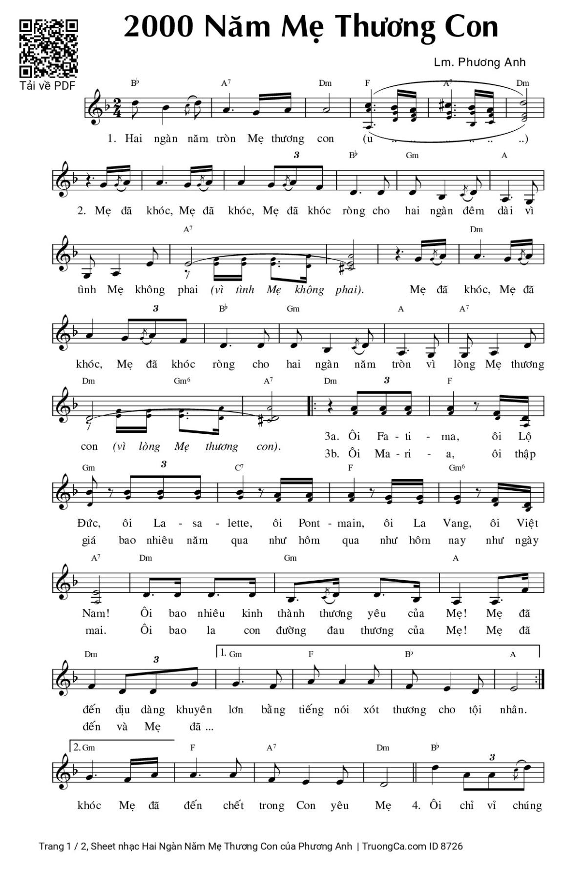 Phương Anh Hai ngàn năm tròn Mẹ thương con Mẹ đã khóc [PDF] [Sheet] [Lyrics] [Mp4/Midi]