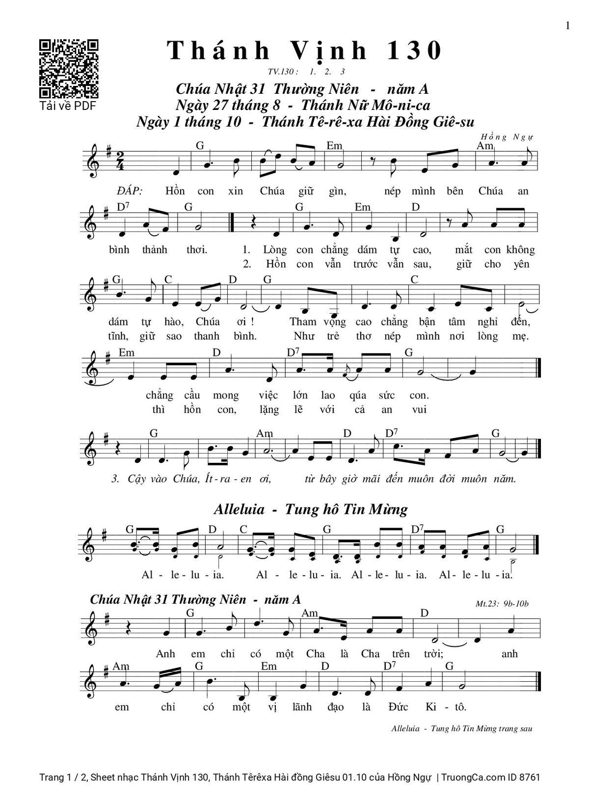 More similar sheets PDF Thánh Vịnh 130, Thánh Têrêxa Hài đồng Giêsu 01.10: