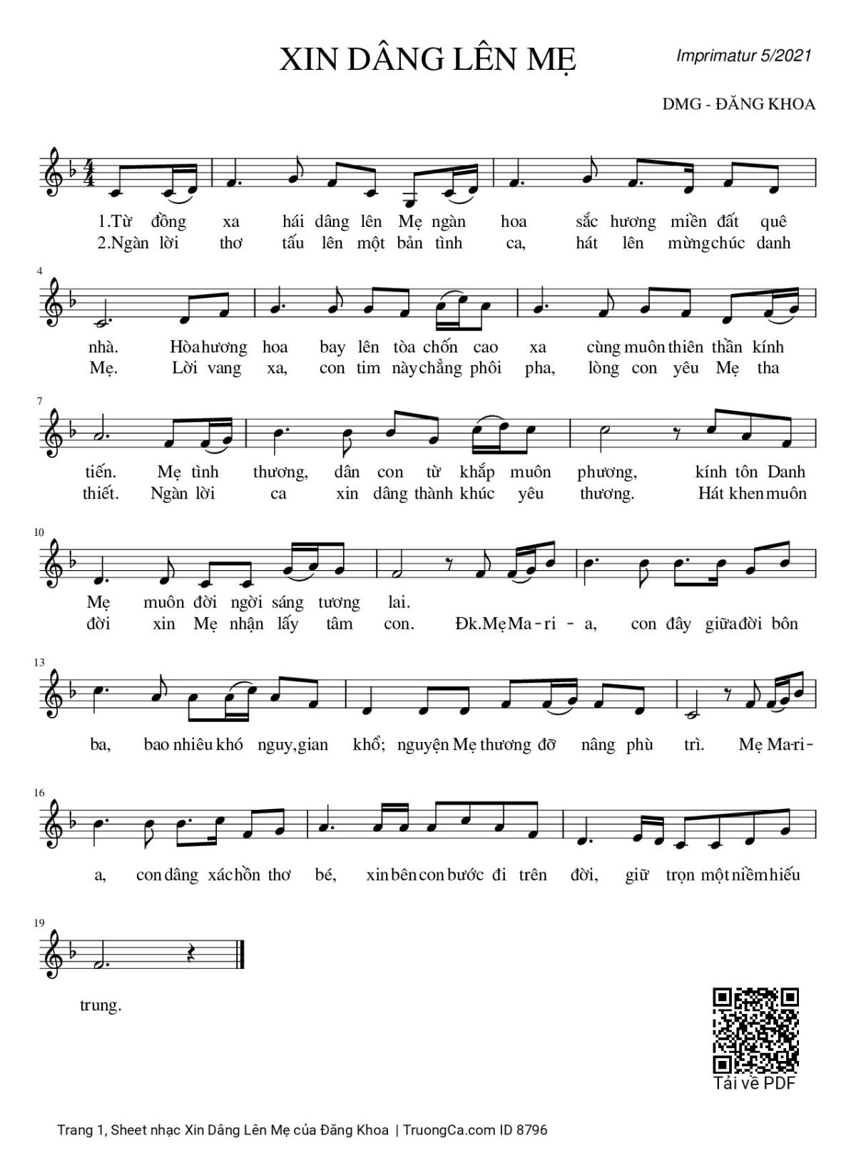 Sheet PDF with the same name Xin Dâng Lên Mẹ: