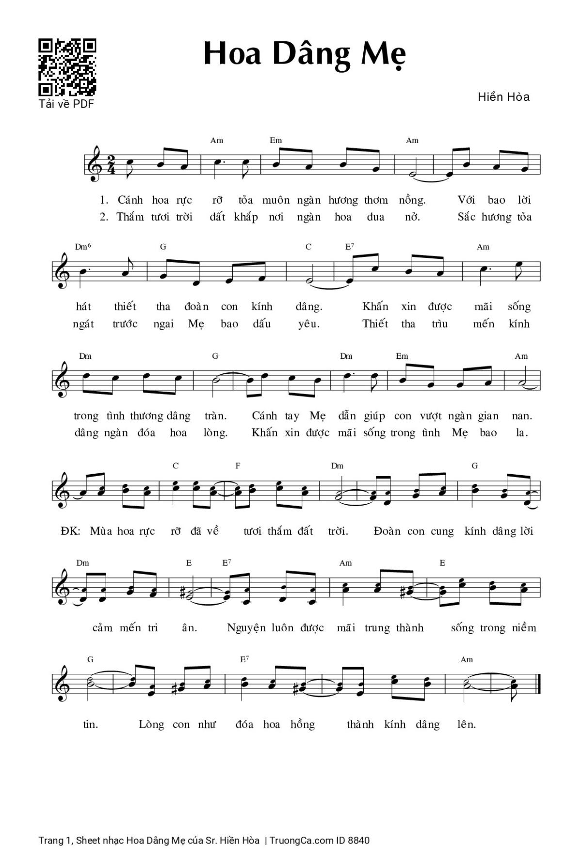 Sheet PDF with the same name Hoa Dâng Mẹ: