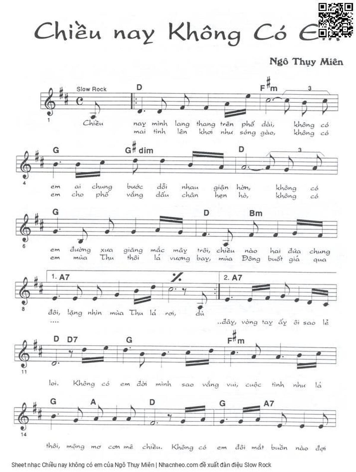 Ngô Thụy Miên Chiều nay mình lang thang trên phố dài Không có em ai chung bước dỗi nhau giận hờn [PDF] [Sheet] [Lyrics] [Mp4/Midi]