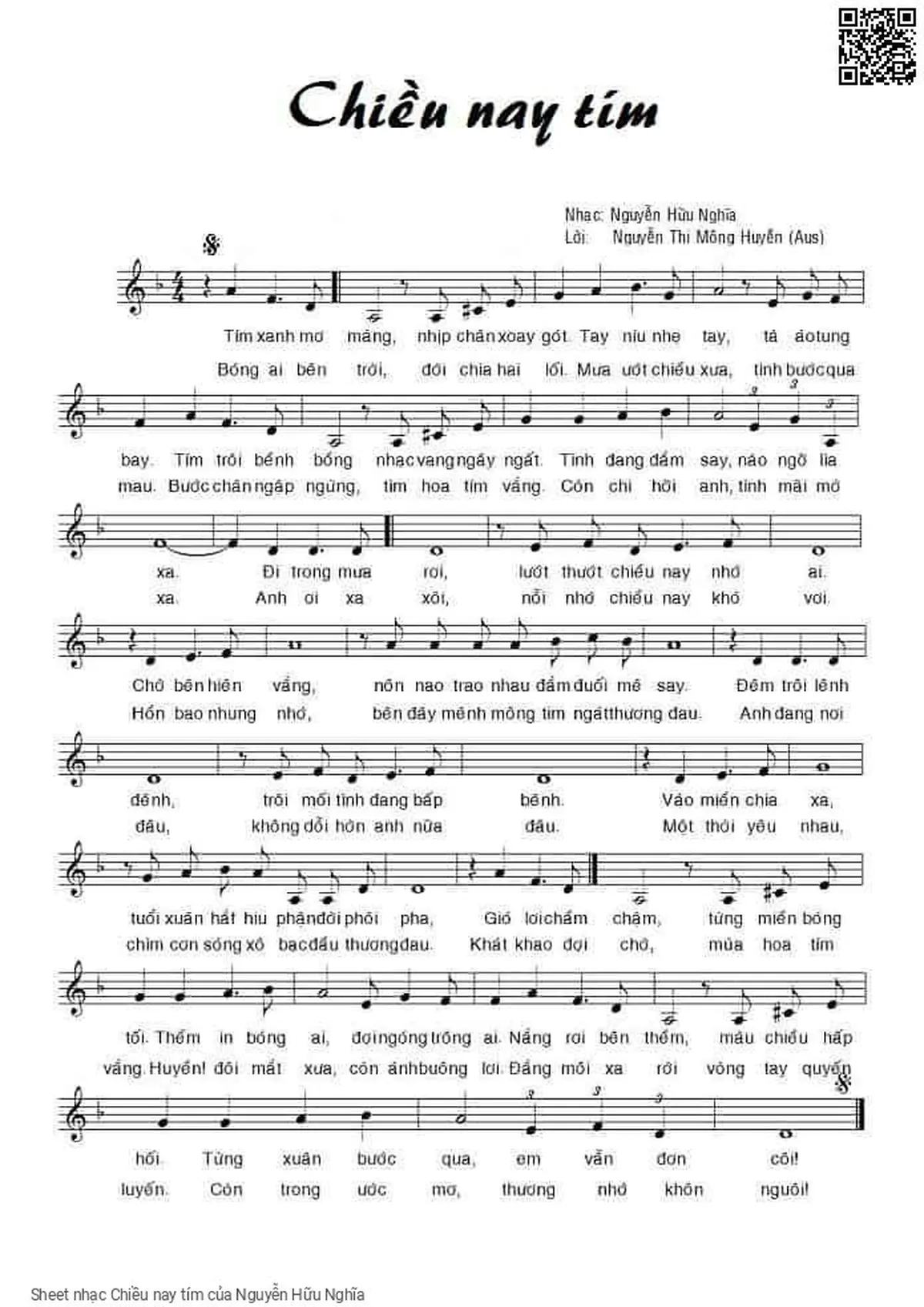 Nguyễn Hữu Nghĩa Tím xanh mơ màng nhịp chân xoay gót tay níu nhẹ tay tà áo tung bay [PDF] [Sheet] [Lyrics] [Mp4/Midi]