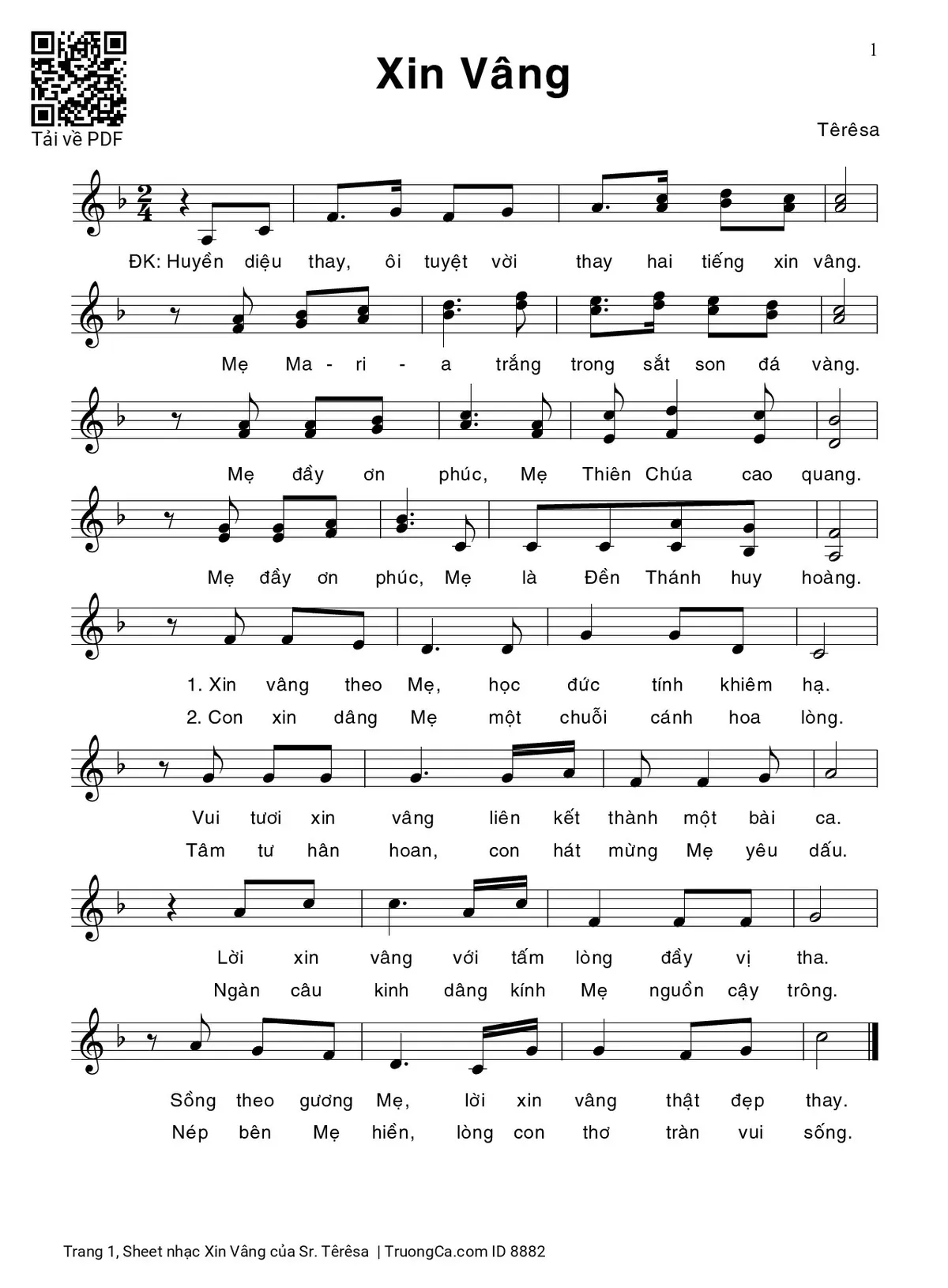 Sheet PDF with the same name Xin Vâng: