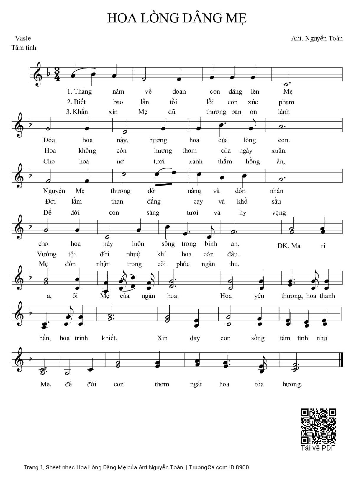 Sheet PDF with the same name Hoa Lòng Dâng Mẹ: