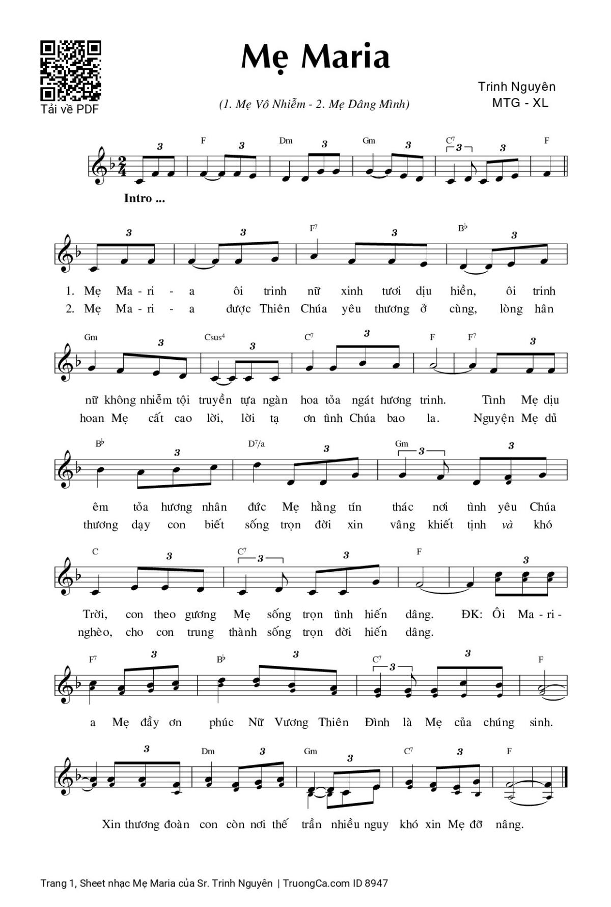 Sheet PDF with the same name Mẹ Maria: