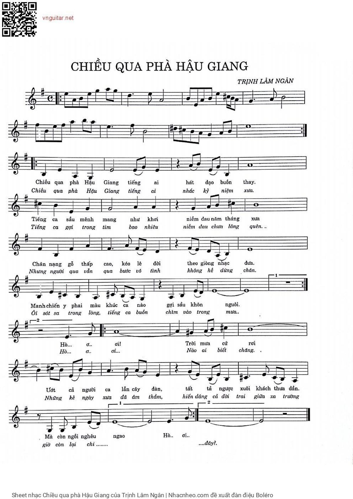 Trịnh Lâm Ngân Chiều qua phà Hậu Giang tiếng ai hát dạo buồn thay [PDF] [Sheet] [Lyrics] [Mp4/Midi] [Story and comment]