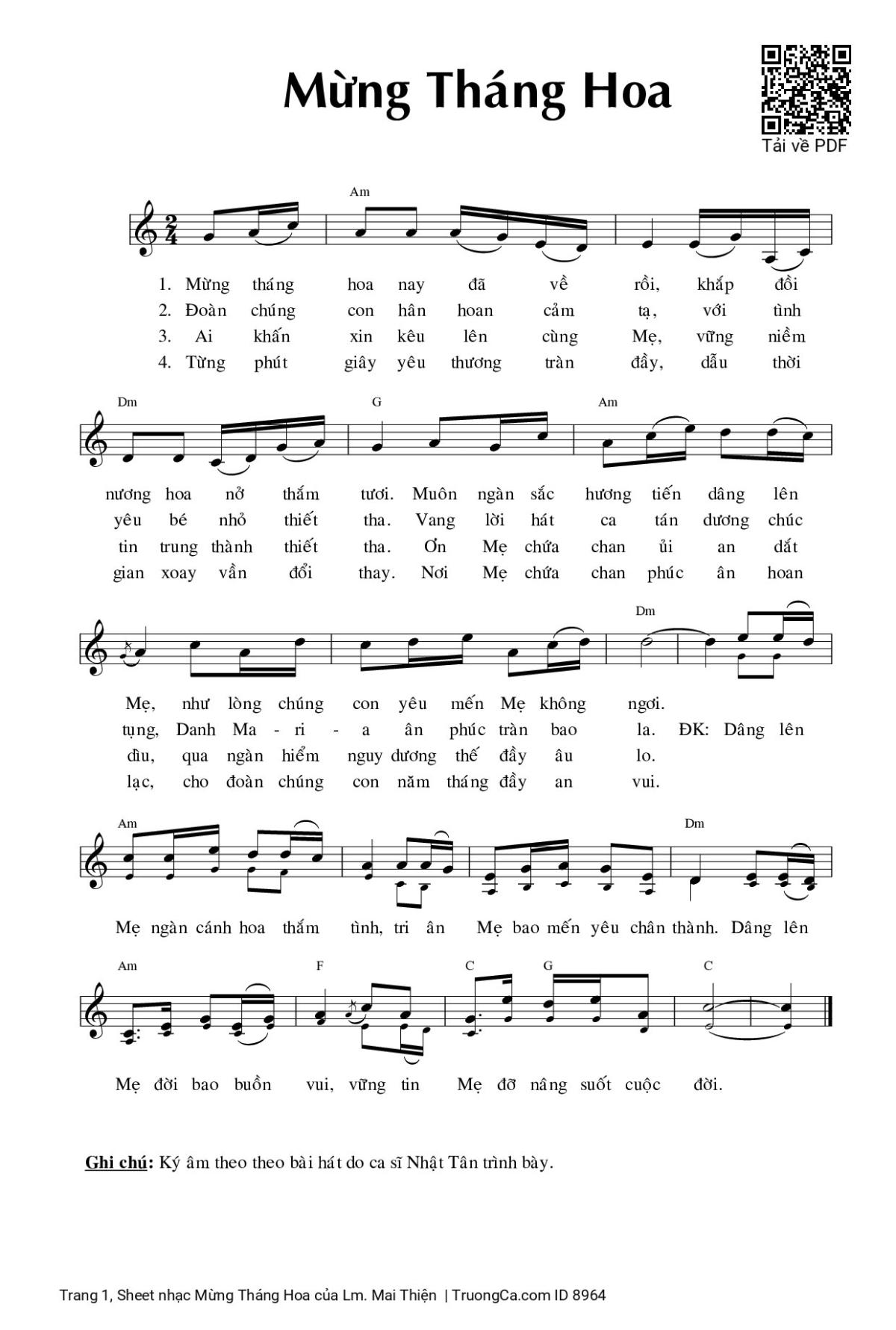 Sheet PDF with the same name Mừng Tháng Hoa:
