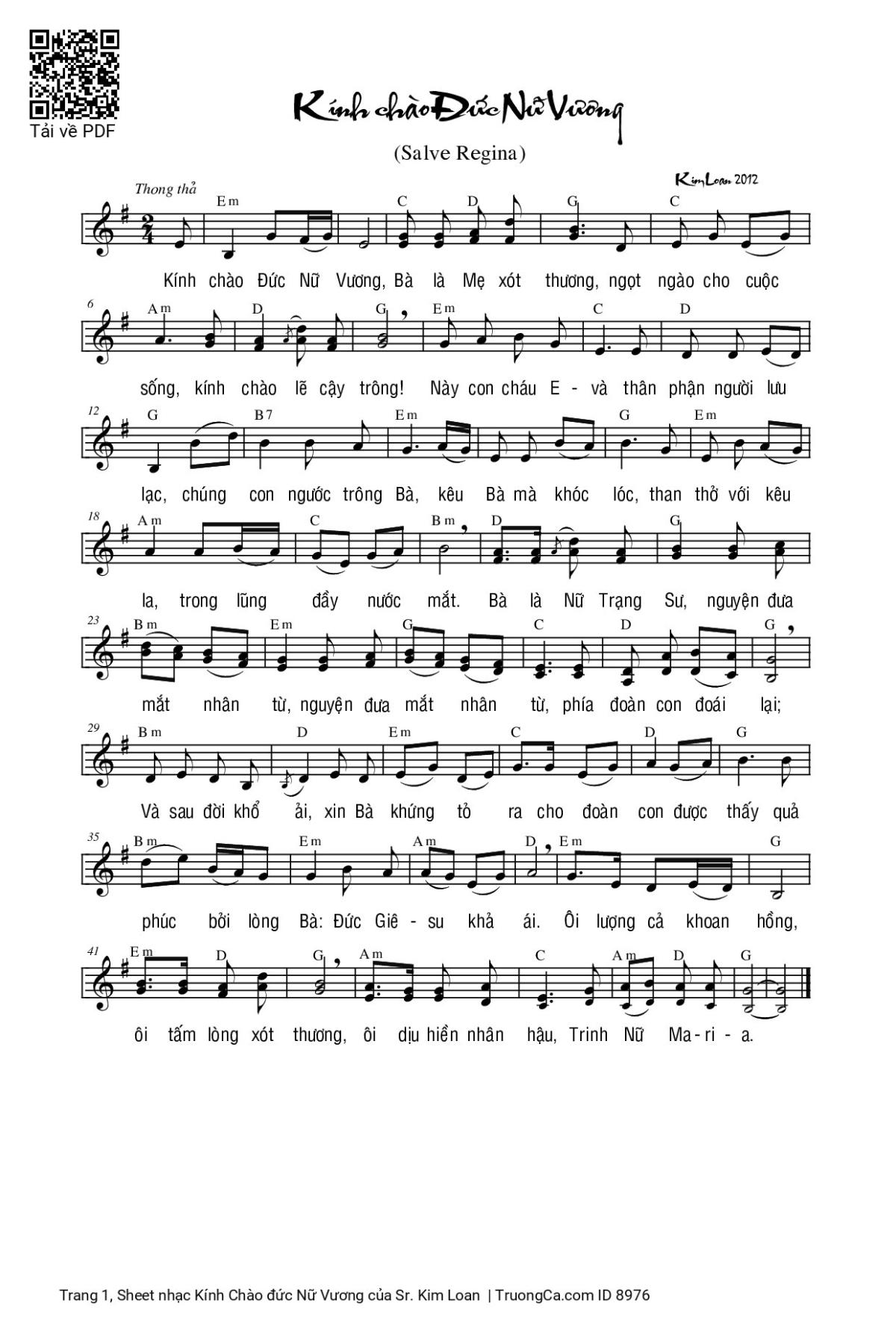 Sheet PDF with the same name Kính Chào đức Nữ Vương: