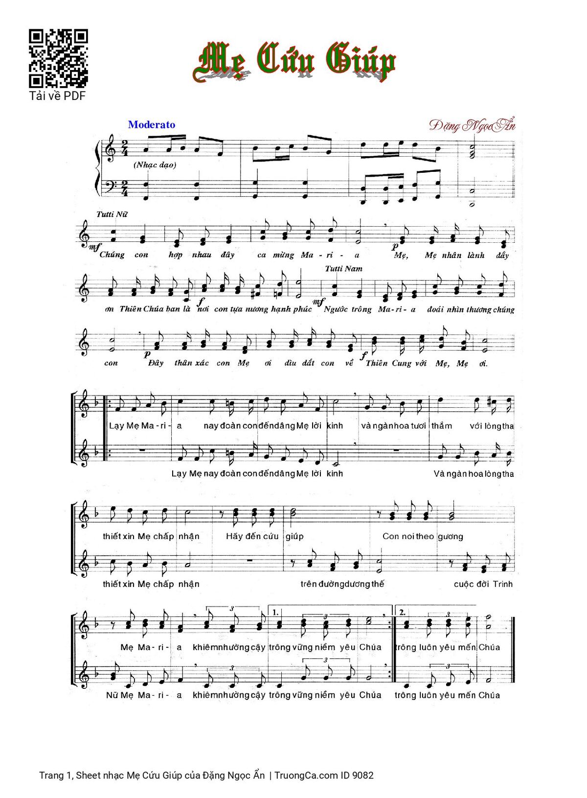 Transposition is the process of moving a song's melody and chords up or down in pitch by a constant interval. The direction of the transposition tool is indicated by a plus (+) sign for up and a minus (-) sign for down. Hover mouse over chords signs to see the chords chart of Mẹ Cứu Giúp song.