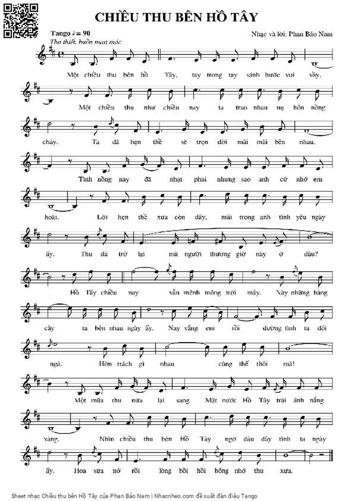 Phan Bảo Nam Một chiều thu bên Hồ Tây Tay trong tay sánh bước vui vầy [PDF] [Sheet] [Lyrics] [Mp4/Midi]