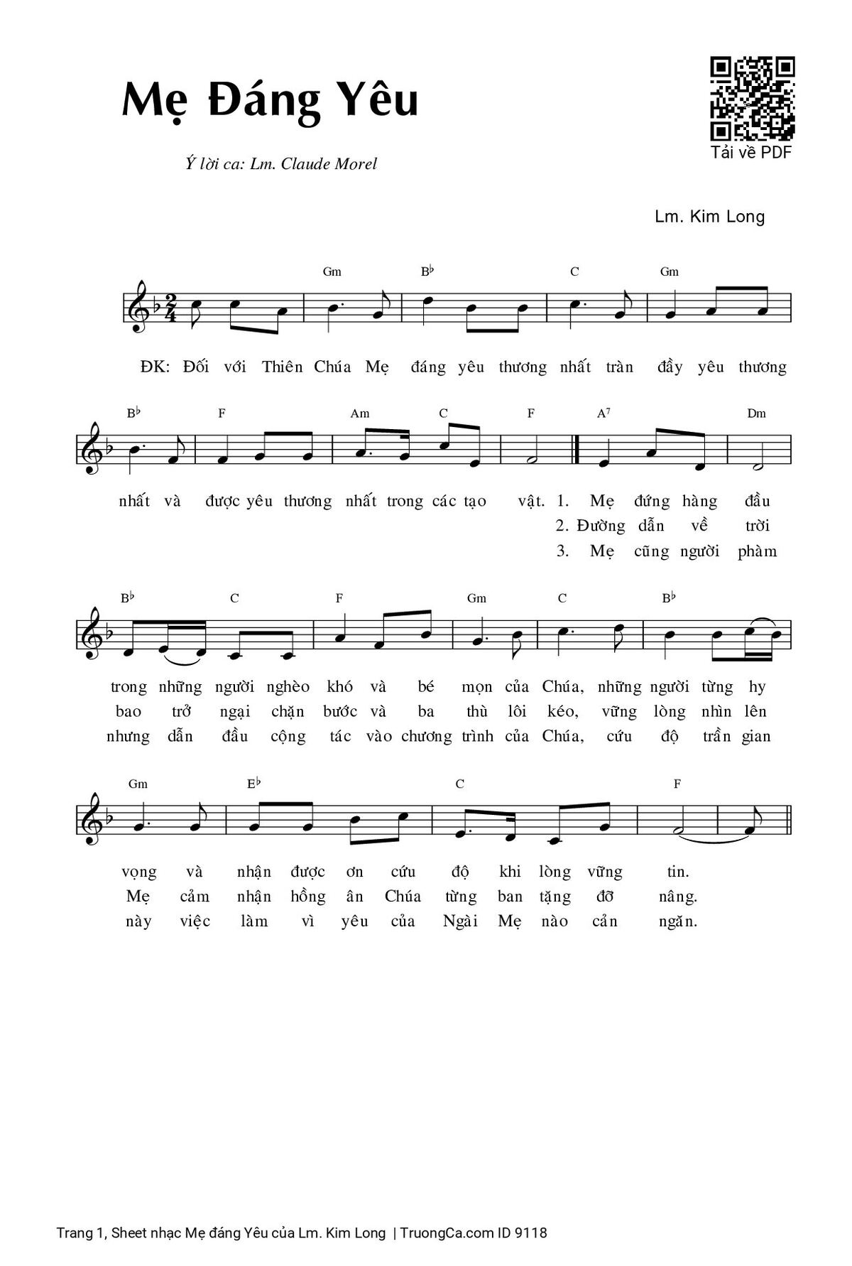 Transposition is the process of moving a song's melody and chords up or down in pitch by a constant interval. The direction of the transposition tool is indicated by a plus (+) sign for up and a minus (-) sign for down. Hover mouse over chords signs to see the chords chart of Mẹ đáng Yêu song.