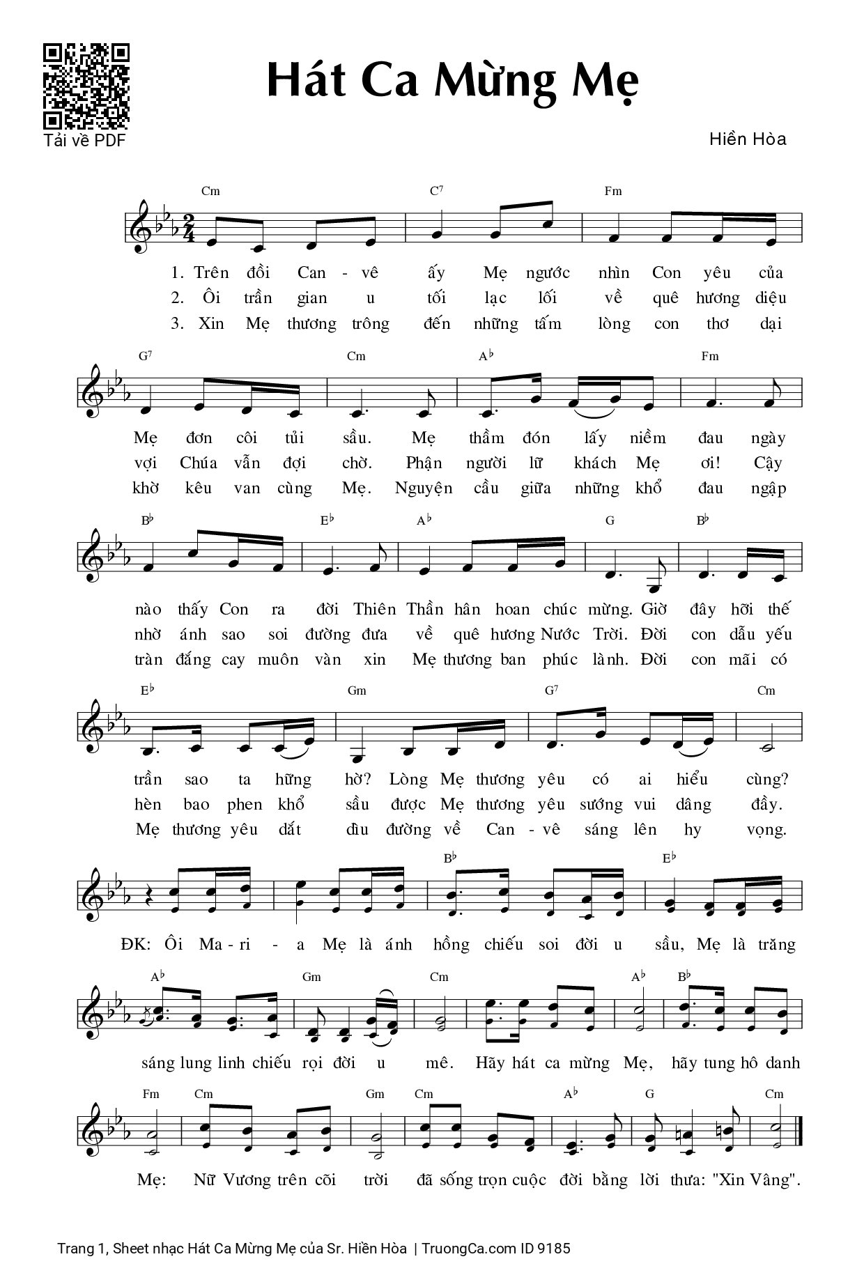 Sheet PDF with the same name Hát Ca Mừng Mẹ: