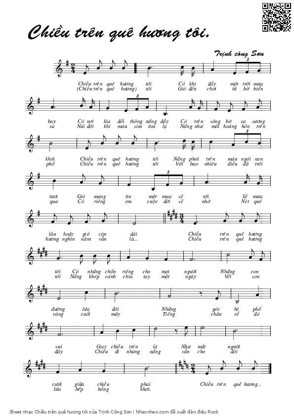 Trịnh Công Sơn Chiều trên quê hương tôi có khi đây một trời mưa bay [PDF] [Sheet] [Lyrics] [Mp4/Midi]