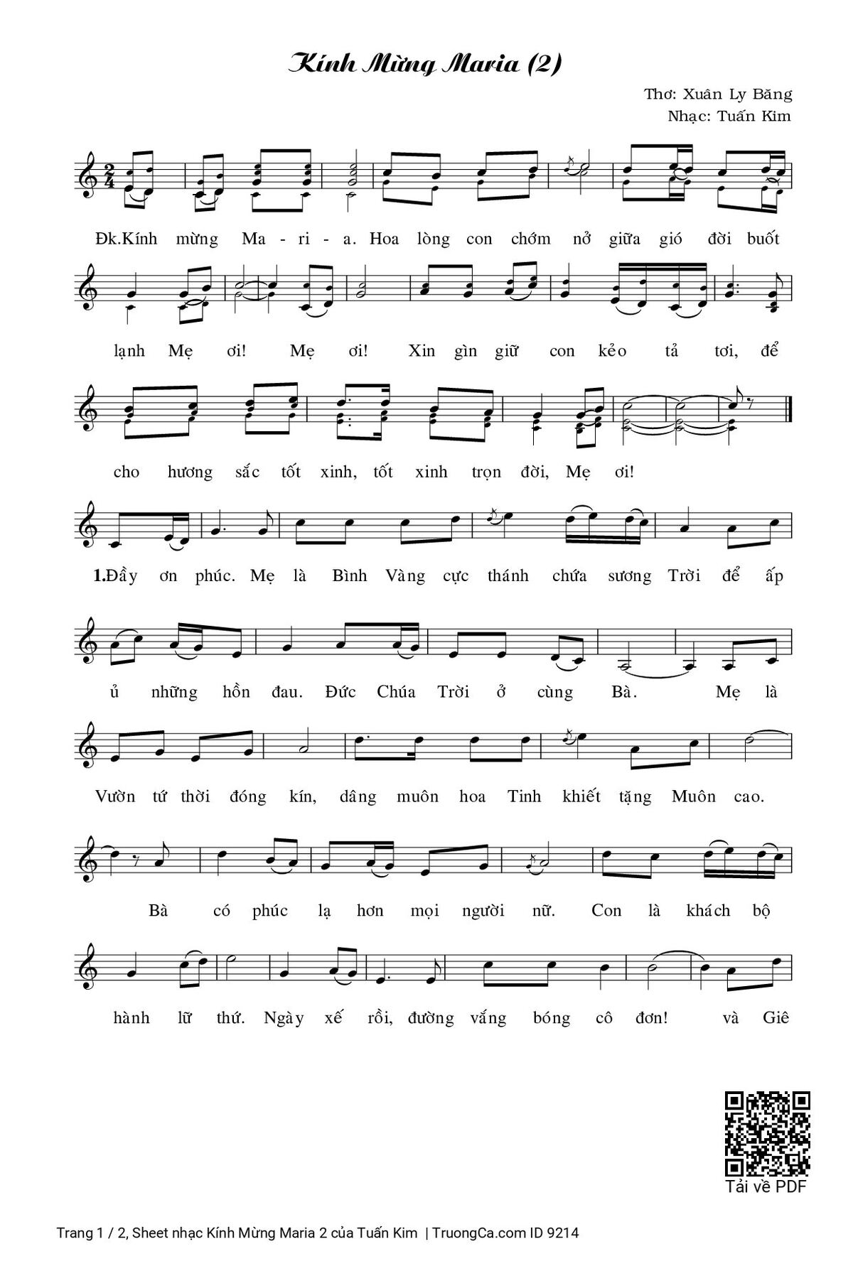 More similar sheets PDF Kính Mừng Maria 2 (4 bè):
