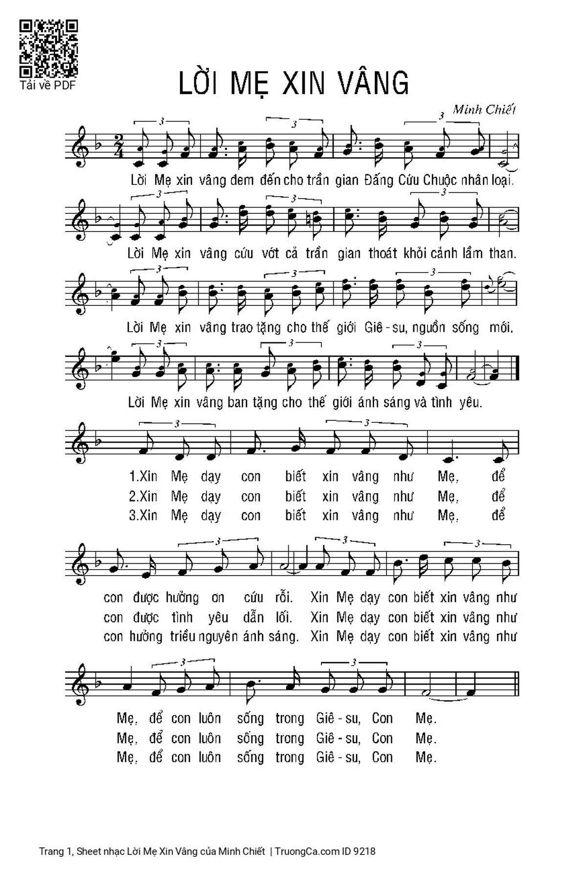 More similar sheets PDF Lời Mẹ Xin Vâng: