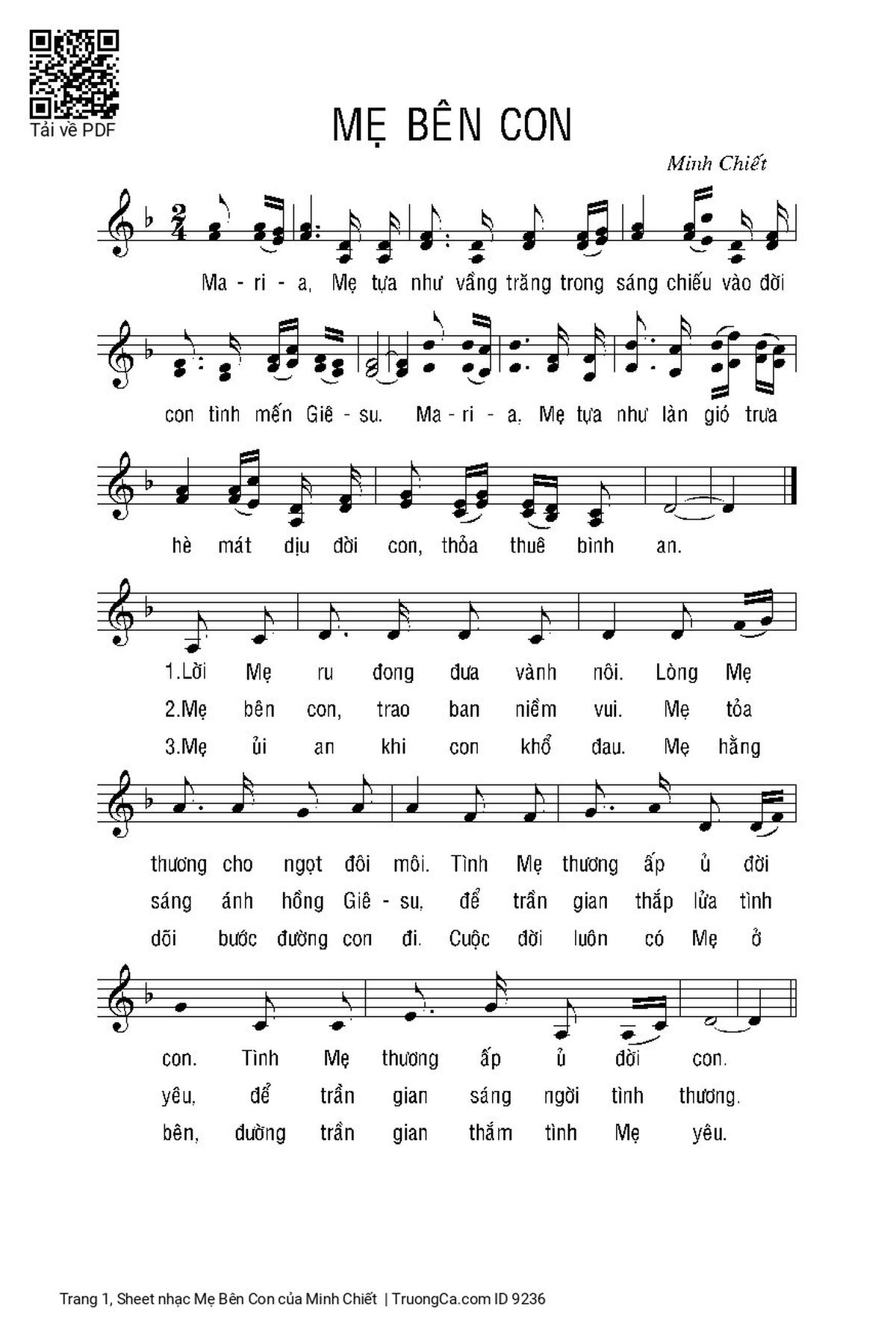 Điệp khúc: Ma-ri-a, Mẹ tựa như vầng trăng trong sáng chiếu vào đời con tình mến Giê-su. Ma-ri-a, Mẹ tựa như làn gió trưa hè mát dịu đời con, thỏa thuê bình an.