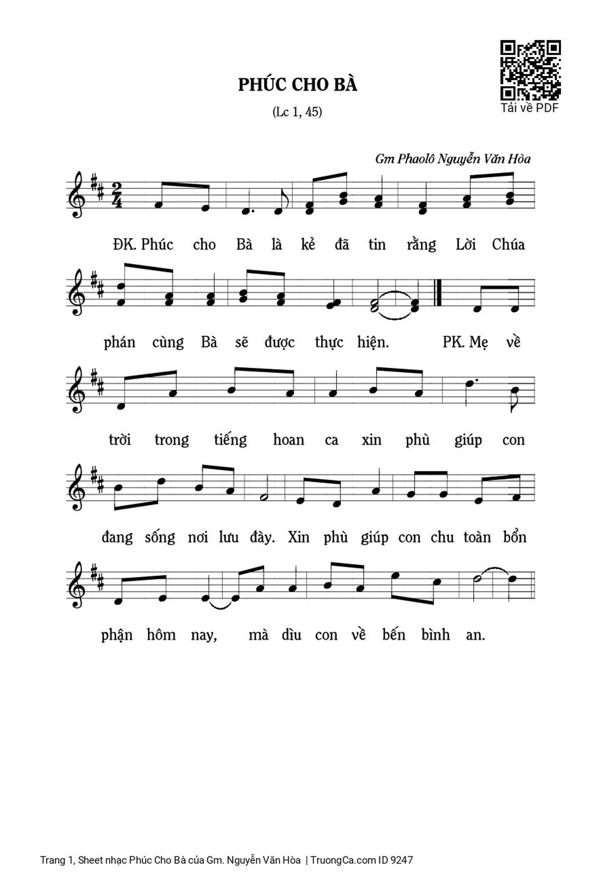 The first sentence: Phúc cho Bà là kẻ đã tin rằng Lời Chúa phán cùng Bà sẽ được thực hiện