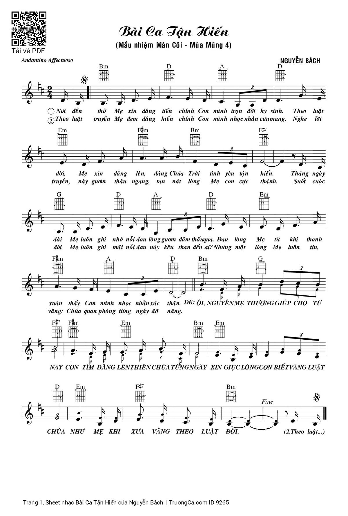 More similar sheets PDF Bài Ca Tận Hiến: