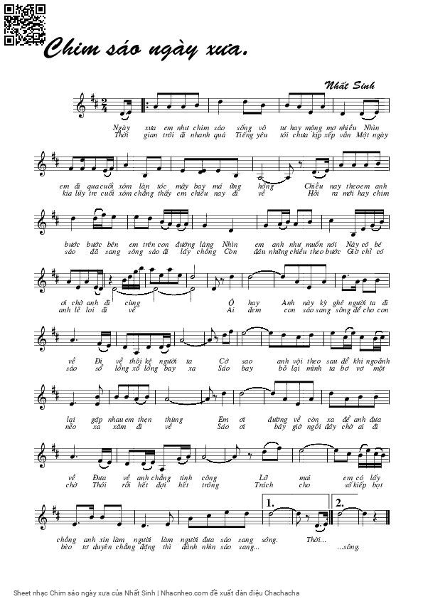 Nhất Sinh Ngày xưa em như chim sáo sống vô tư hay mộng mơ nhiều [PDF] [Sheet] [Lyrics] [Mp4/Midi]