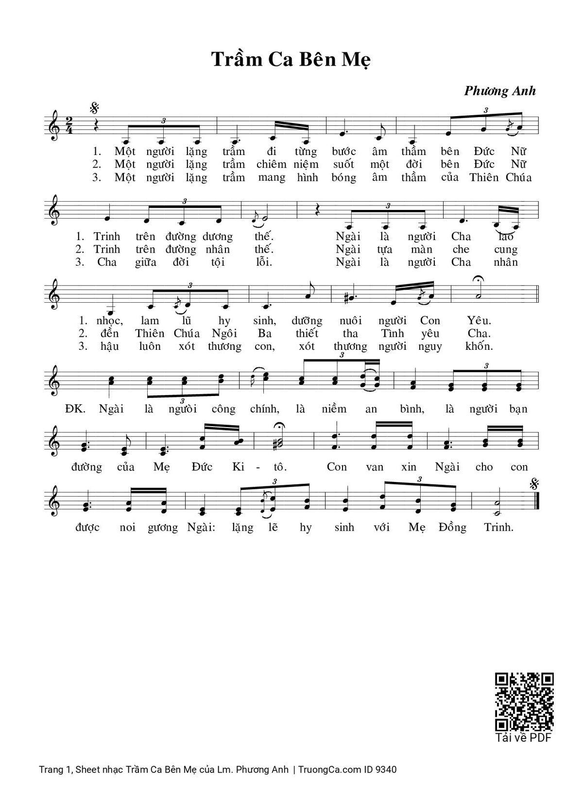 The first sentence: Một người lặng trầm đi từng bước âm thầm bên Đức Nữ Trinh trên đường dương thế