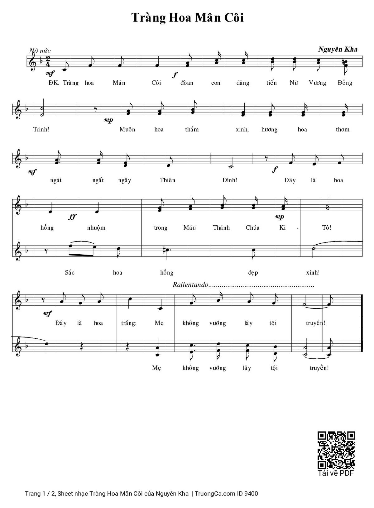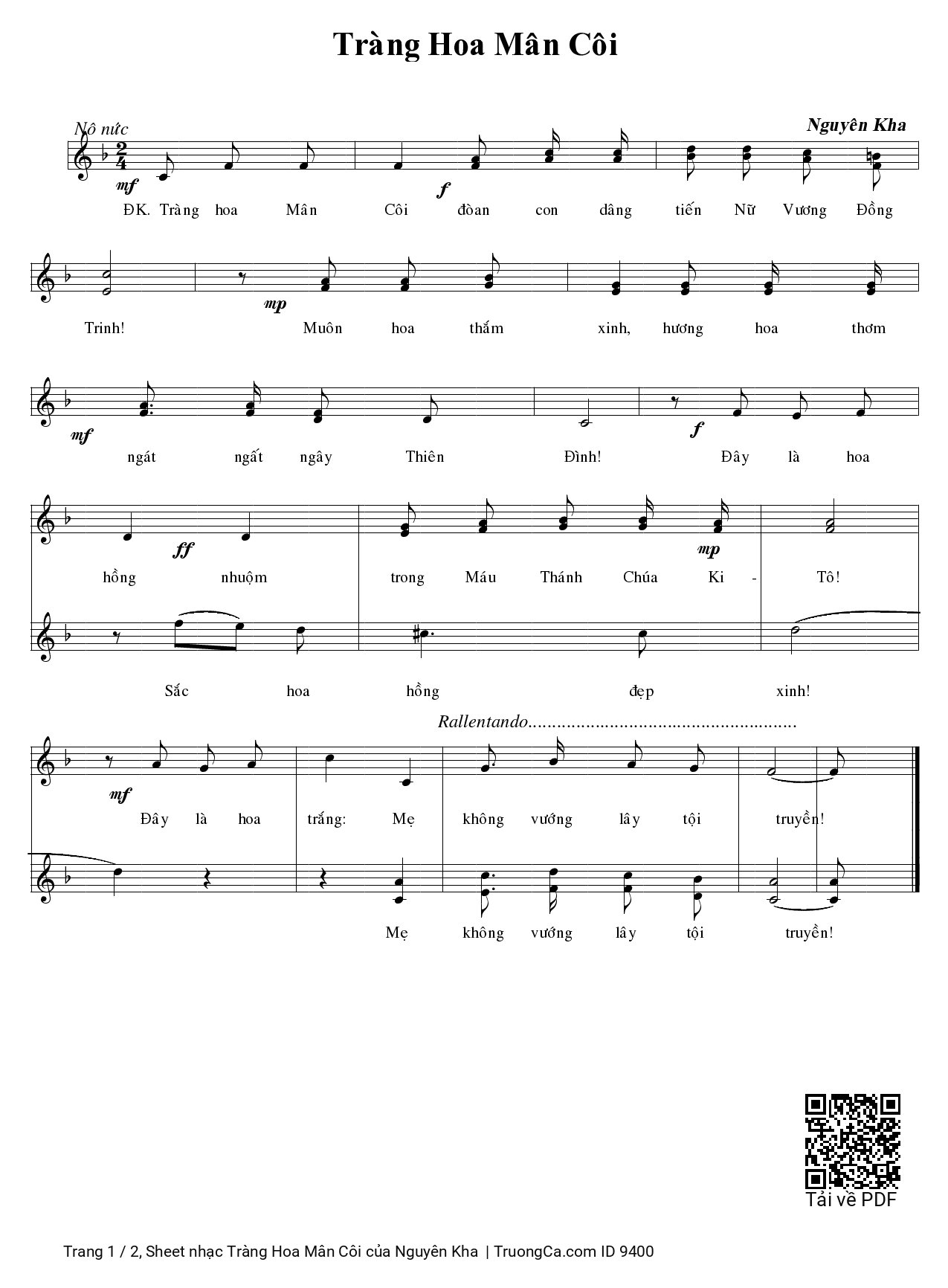 Sheet PDF with the same name Tràng Hoa Mân Côi:
