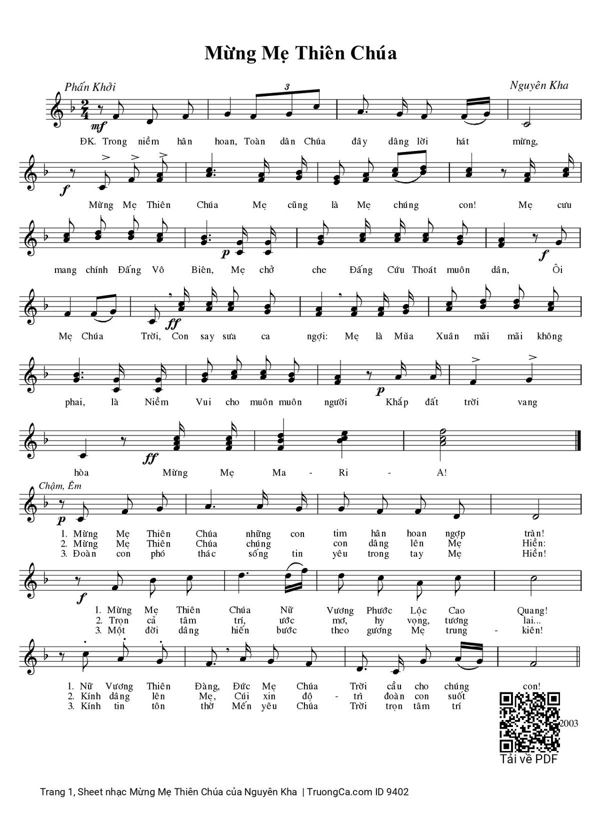 Sheet PDF with the same name Mừng Mẹ Thiên Chúa: