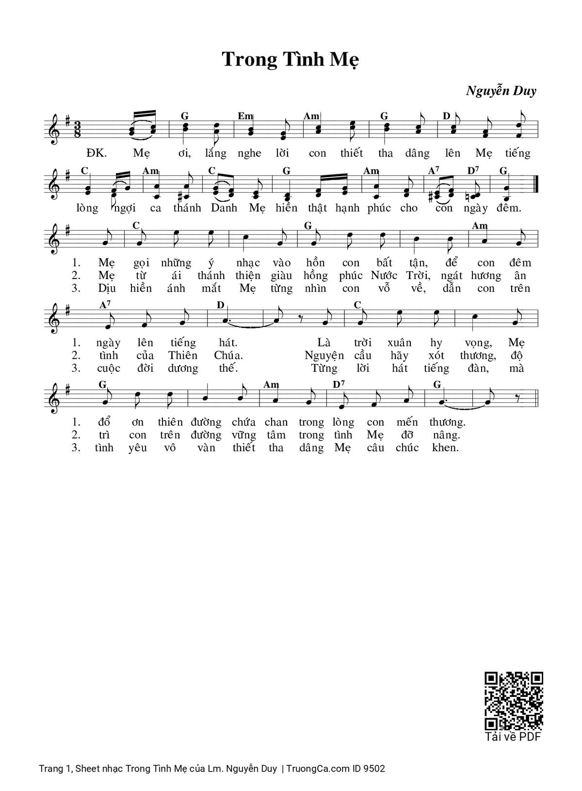 1. Mẹ gọi những ý nhạc vào hồn con bất tận, để con đêm ngày lên tiếng hát. Là trời xuân hy vọng, Mẹ đổ ơn thiên đường chứa chan trong lòng con mến thương.