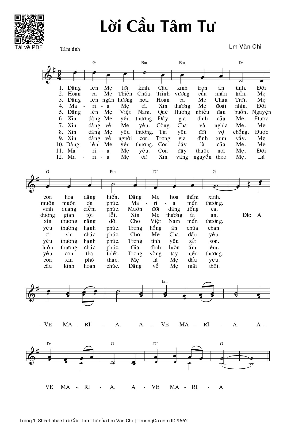Sheet PDF with the same name Lời Cầu Tâm Tư: