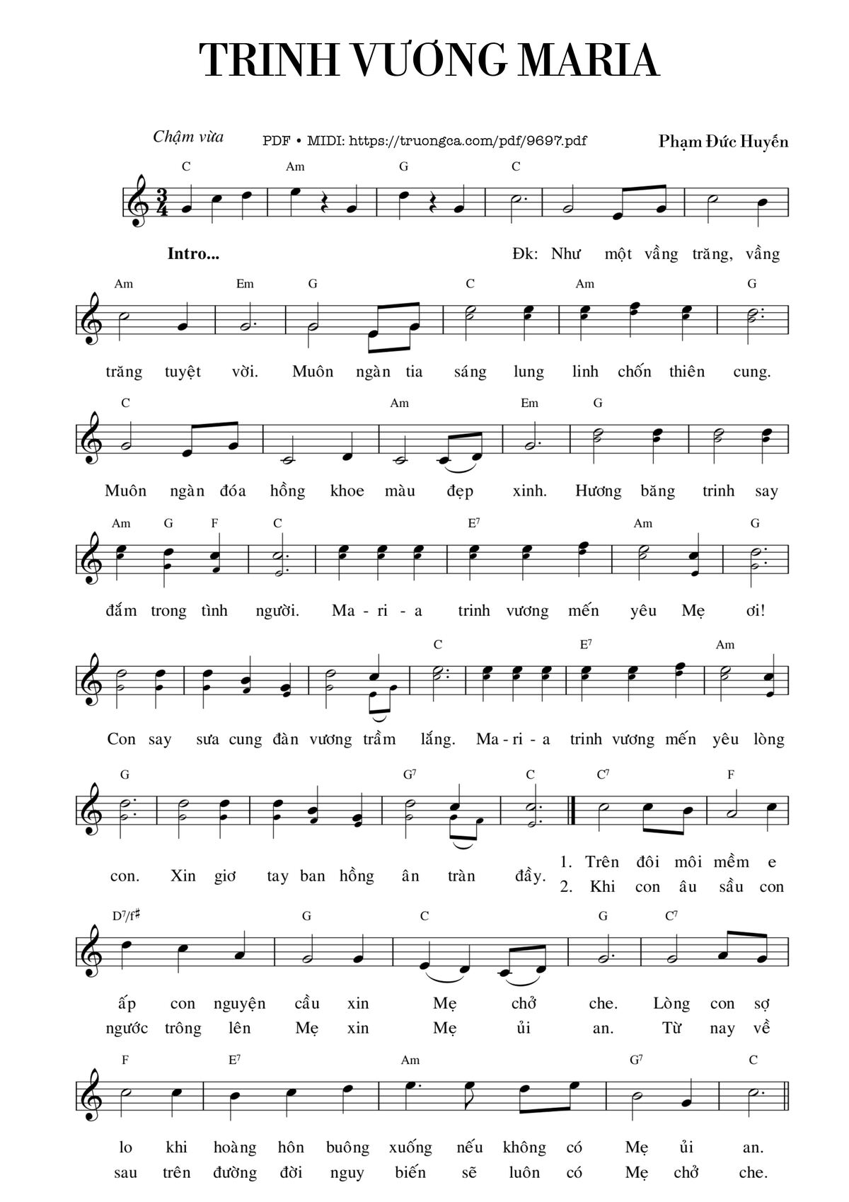 Phạm Đức Huyến Trinh Vương Maria Phạm Đức Huyến Như một vầng trăng [PDF] [Sheet] [Lyrics] [Mp4/Midi]