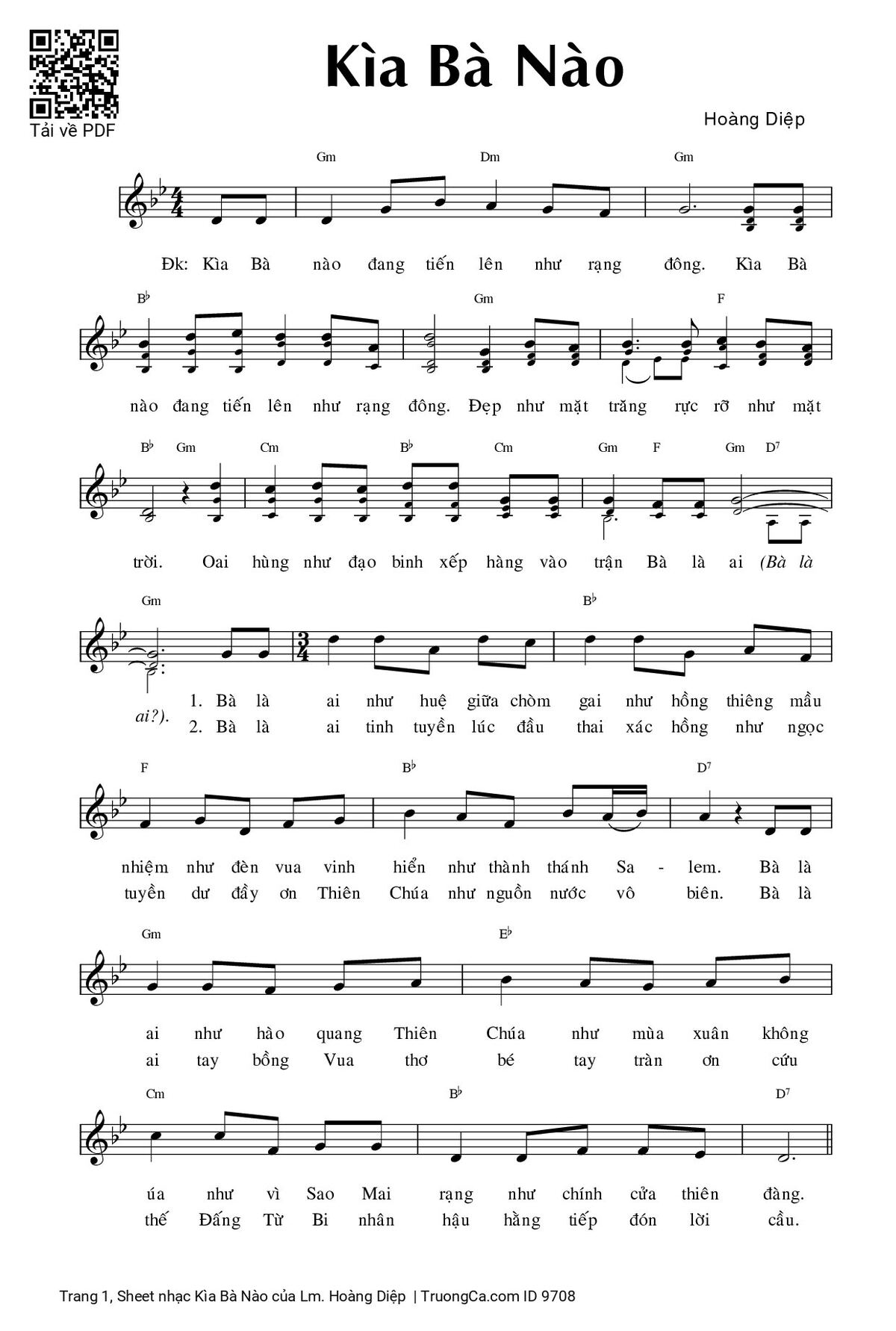 The first sentence: Kìa Bà Nào Lm Hoàng Diệp Kìa bà nào đang tiến lên như rạng đông