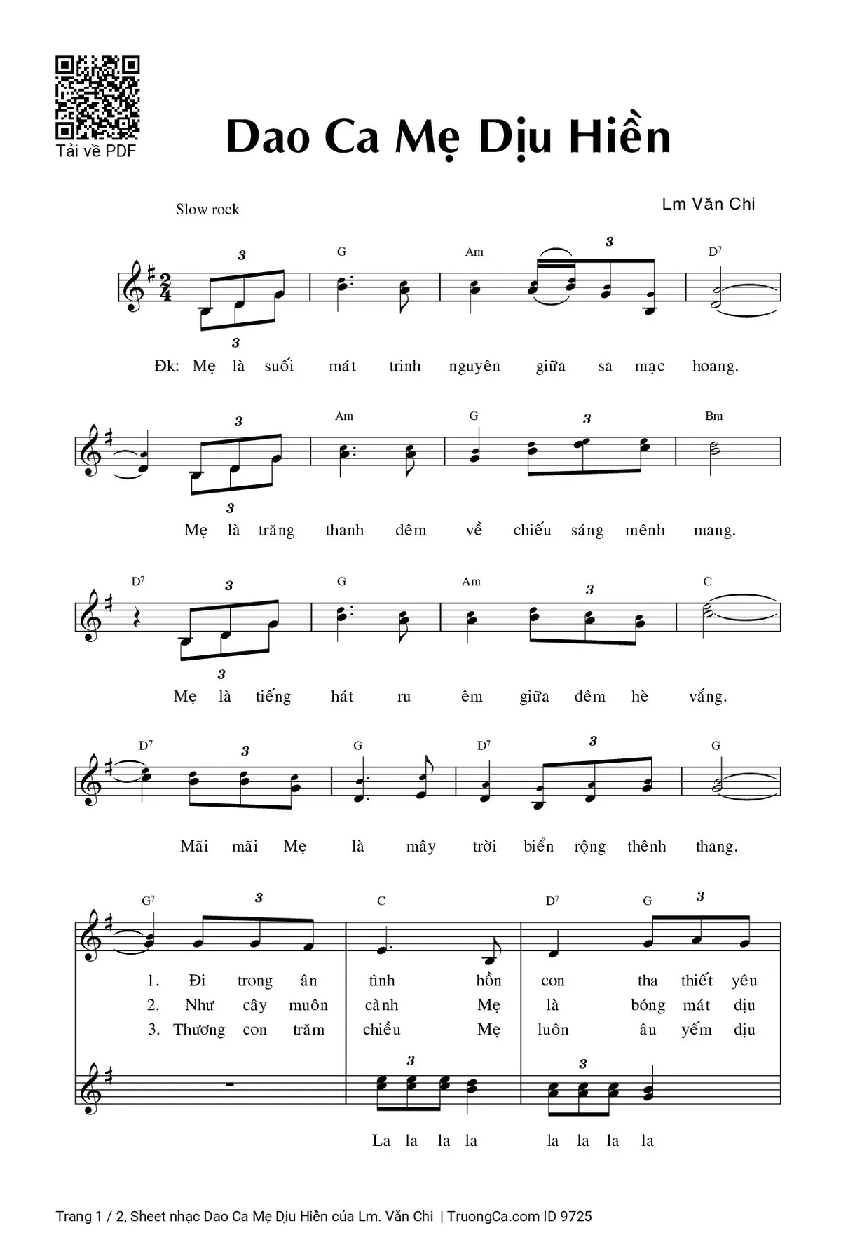 Sheet PDF with the same name Dao Ca Mẹ Dịu Hiền: