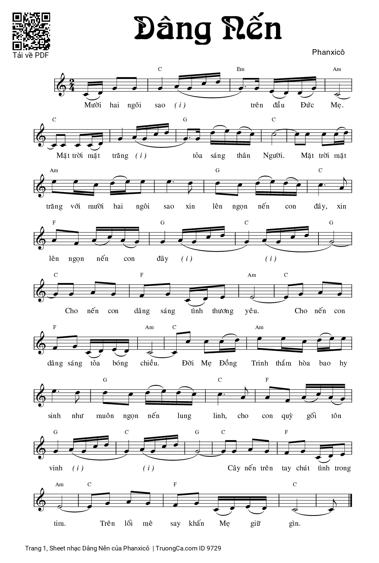 Sheet PDF with the same name Dâng Nến: