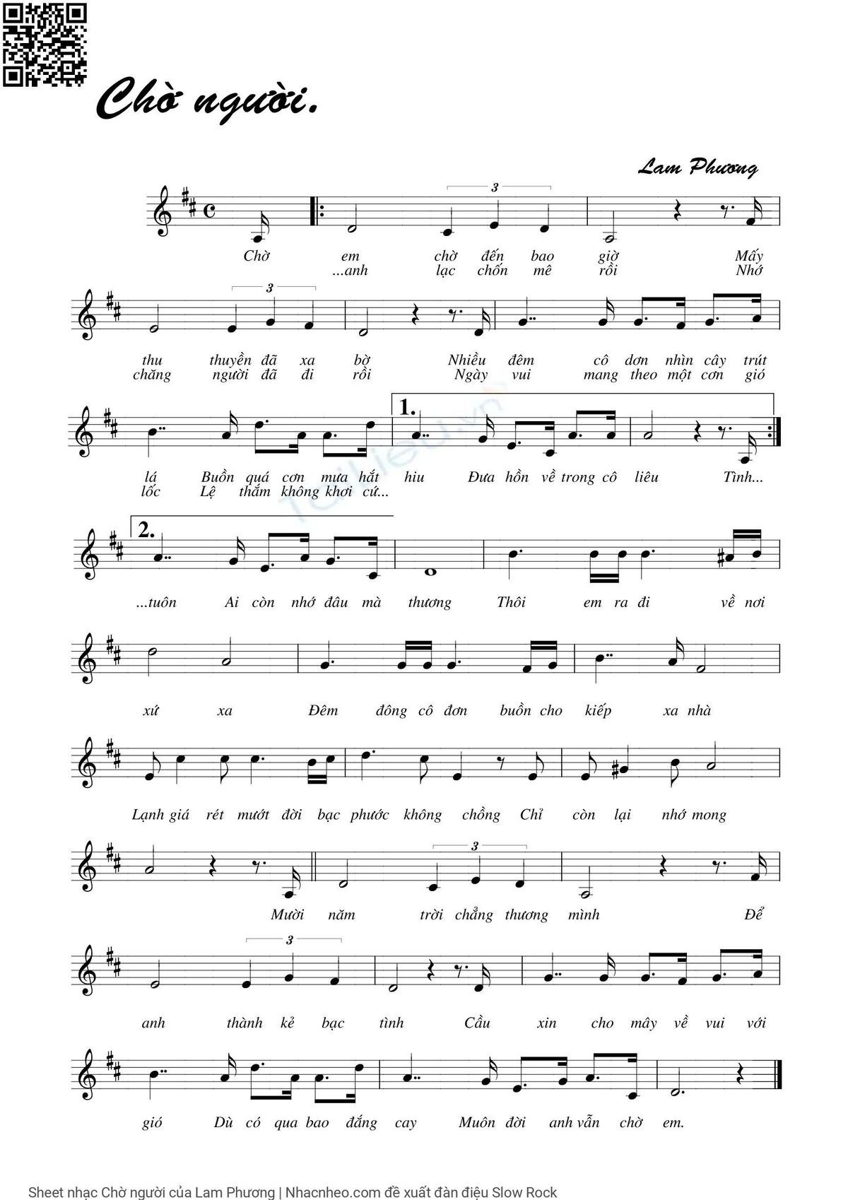 Lam Phương Chờ em chờ đến bao giờ Mấy thu thuyền đã xa bờ [PDF] [Sheet] [Lyrics] [Mp4/Midi]