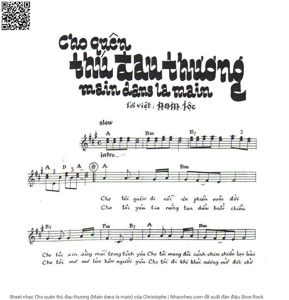 Christophe ndash Cho tôi quên đi nỗi ưu phiền [PDF] [Sheet] [Lyrics] [Mp4/Midi]
