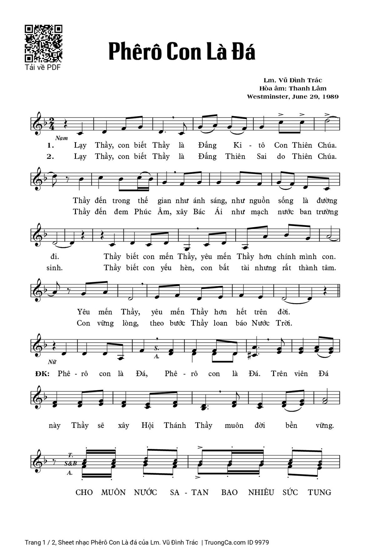 Sheet PDF with the same name Phêrô Con Là đá: