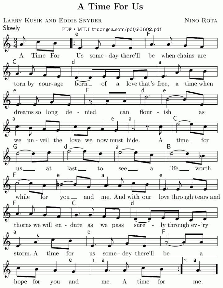 Transposition is the process of moving a song's melody and chords up or down in pitch by a constant interval. The direction of the transposition tool is indicated by a plus (+) sign for up and a minus (-) sign for down. Hover mouse over chords signs to see the chords chart of A time for us song.