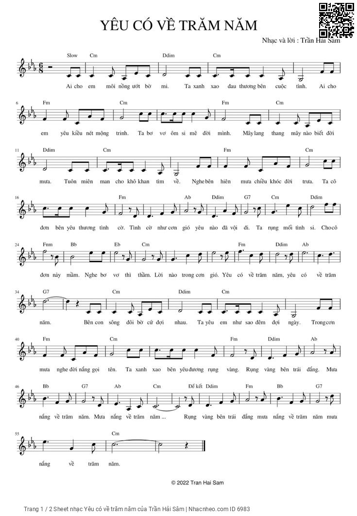 Trần Hải Sâm Ai cho em môi nồng ướt bờ mi Ta xanh xao bên đau thương cuộc tình [PDF] [Sheet] [Lyrics] [Mp4/Midi]