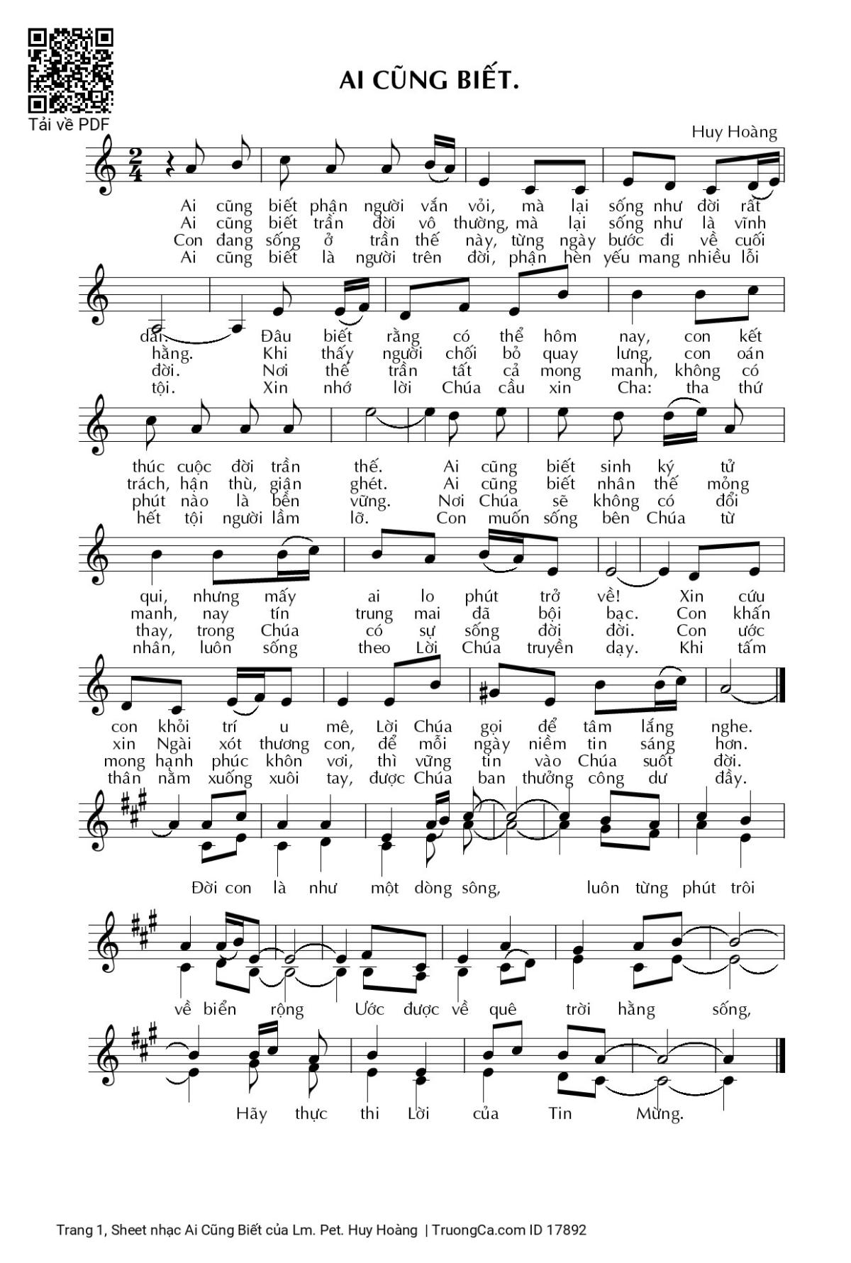 4/ Ai cũng biết là người trên đời phận hèn yếu mang nhiều lỗi tội. Xin nhớ lời Chúa cầu xin Cha: tha thứ hết tội người lầm lỡ. Con muốn sống bên Chúa từ nhân luôn sống theo lời Chúa truyền dạy, khi tấm thân nằm xuống xuôi tay được Chúa ban thưởng công dư đầy