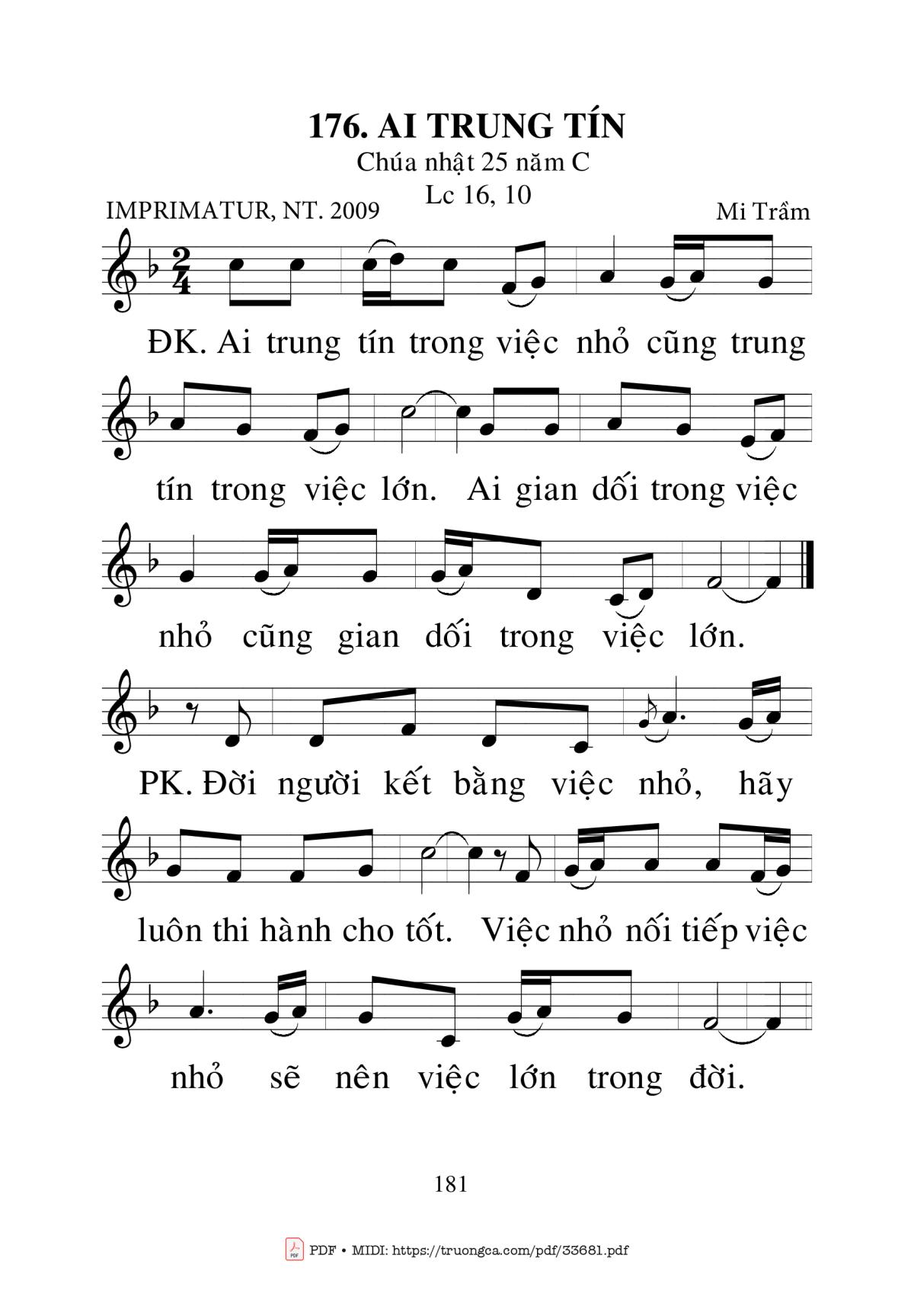 Mi Trầm Ai trung tín trong việc nhỏ cũng trung tín trong việc lớn [PDF] [Sheet] [Lyrics] [Mp4/Midi]