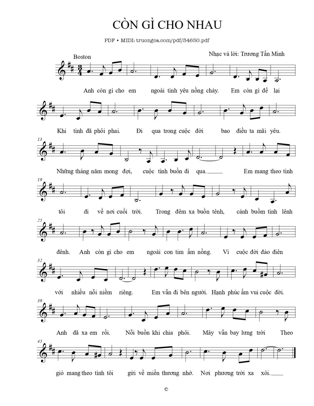 Trương Tấn Minh Anh còn gì cho em Ngoài tình yêu nồng cháy [PDF] [Sheet] [Lyrics] [Mp4/Midi]