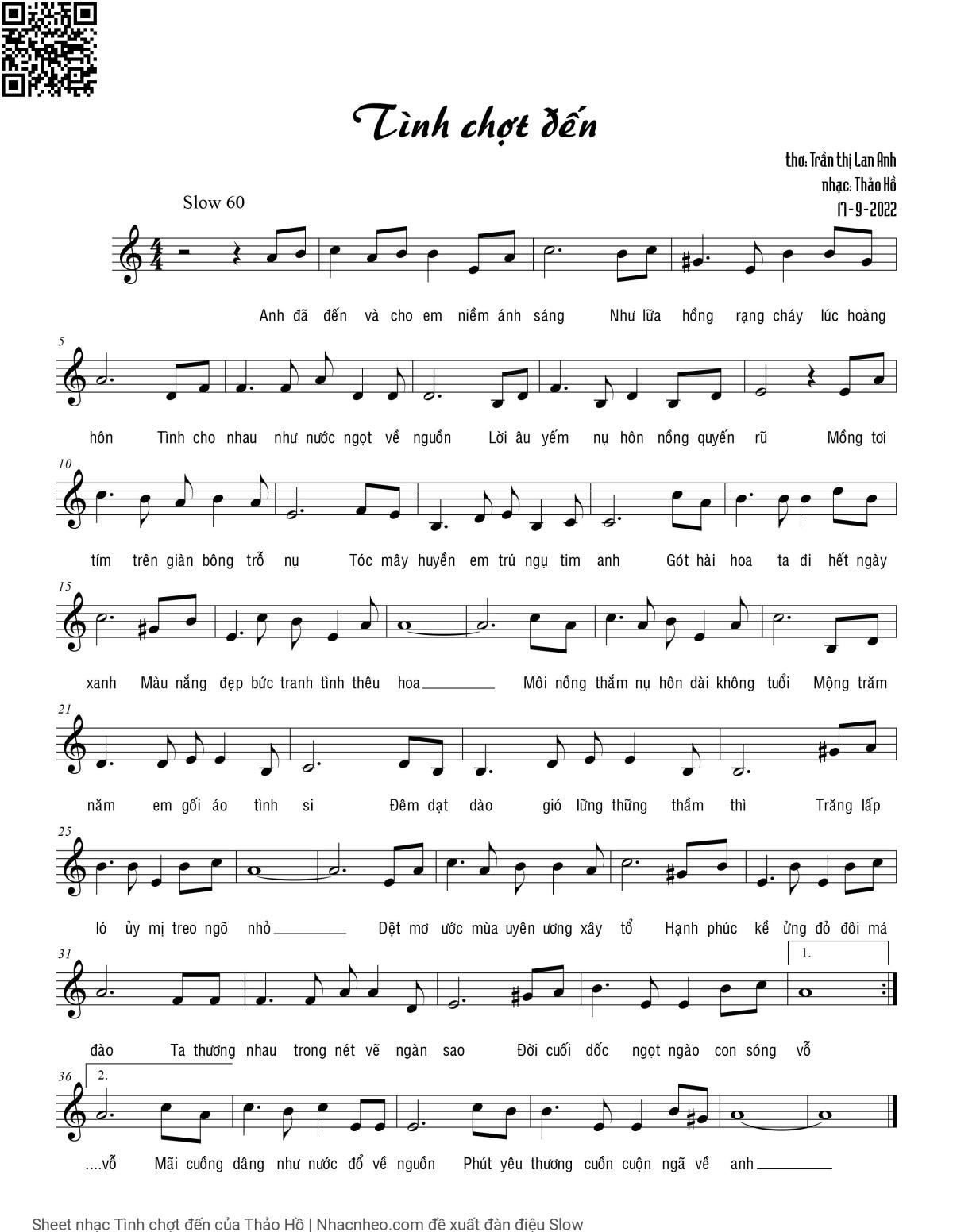 Thảo Hồ Anh đã đến cho em niềm ánh sáng Thắp lửa hồng rạng cháy lúc hoàng hôn [PDF] [Sheet] [Lyrics] [Mp4/Midi]