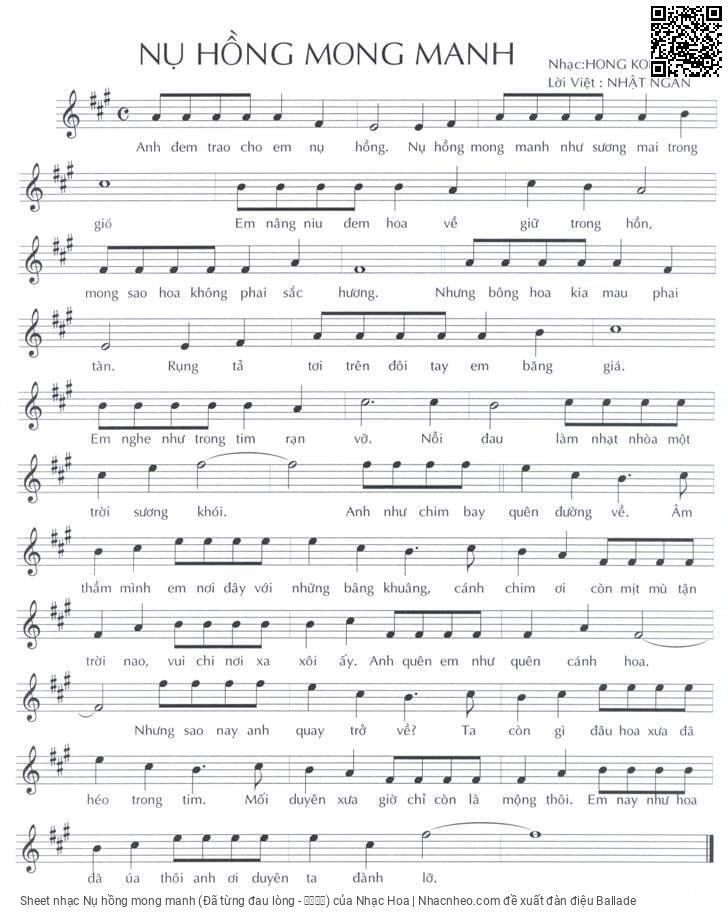 Nhạc Hoa Anh đem trao cho em nụ hồng Nụ hồng mong manh như sương mai trong gió [PDF] [Sheet] [Lyrics] [Mp4/Midi]