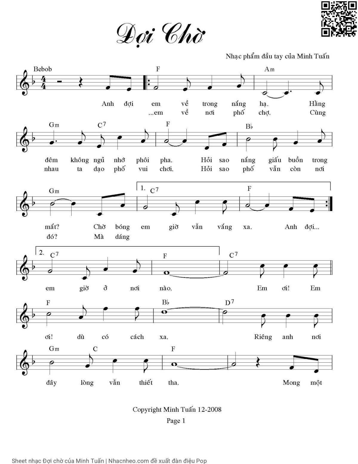 Minh Tuấn Anh đợi em về trong nắng hạ Hàng đêm không ngủ nhớ phôi pha [PDF] [Sheet] [Lyrics] [Mp4/Midi]