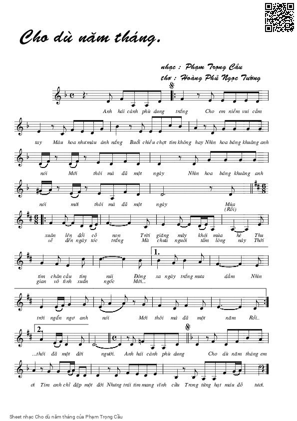 Transposition is the process of moving a song's melody and chords up or down in pitch by a constant interval. The direction of the transposition tool is indicated by a plus (+) sign for up and a minus (-) sign for down. Hover mouse over chords signs to see the chords chart of Cho dù năm tháng song.