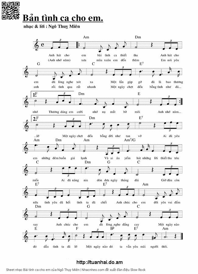 Ngô Thụy Miên Anh hát cho em bài tình ca thiết tha Anh hát cho em dù lòng nghe xót xa [PDF] [Sheet] [Lyrics] [Mp4/Midi]