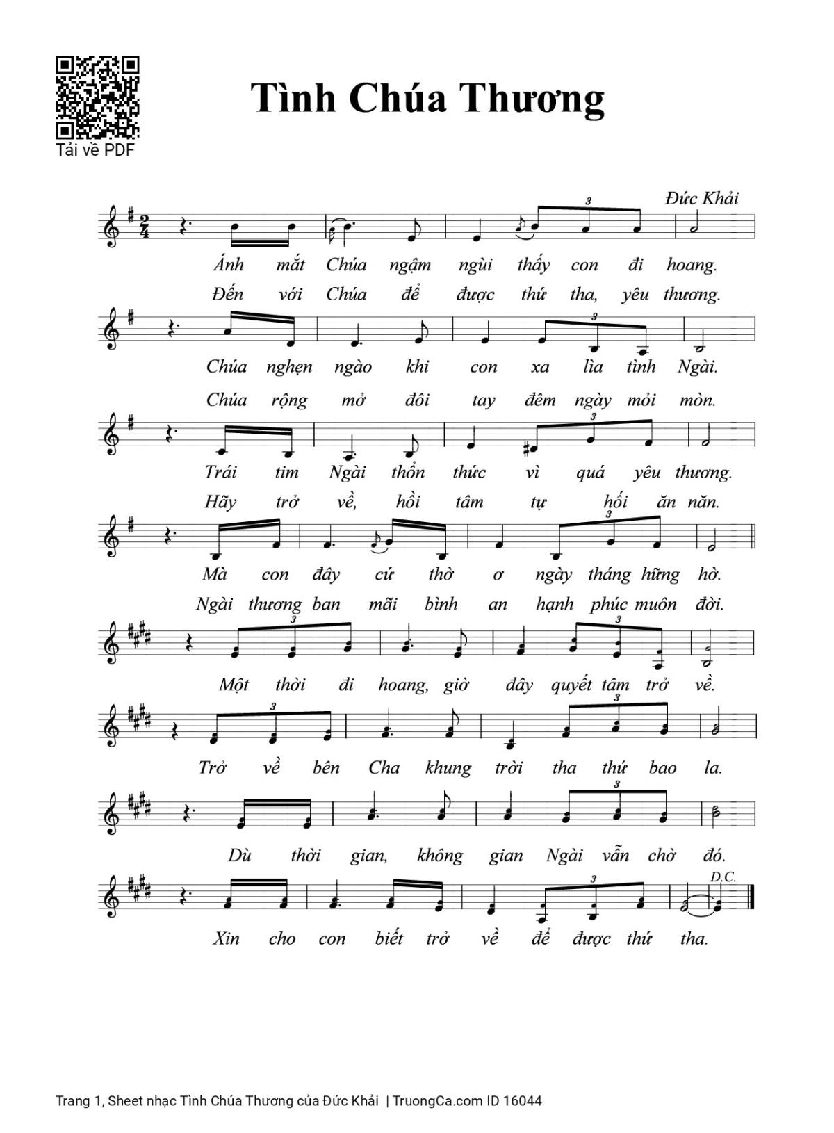 Transposition is the process of moving a song's melody and chords up or down in pitch by a constant interval. The direction of the transposition tool is indicated by a plus (+) sign for up and a minus (-) sign for down. Hover mouse over chords signs to see the chords chart of Tình Chúa Thương song.